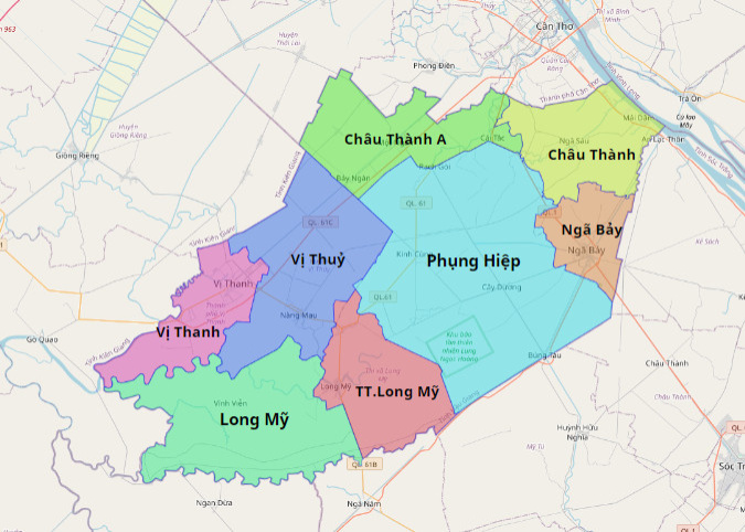 Dịch vụ chành xe đi Hậu Giang nhận vận chuyển và giao hàng tận nơi đến các địa điểm ở Hậu Giang bao gồm: